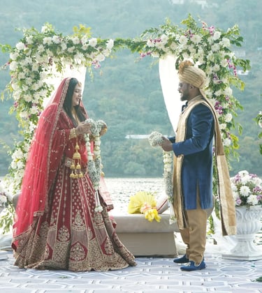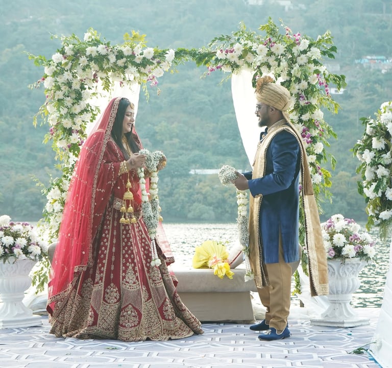 With misty mountains as witnesses and serene lake glistening beyond the varmala, Vivahanta brought to life a magical wedding in Nainital. In the crisp mountain air — perfect for dancing your heart out without breaking a sweat — every moment unfolded with charm, from a hilltop mandap to a candlelit reception under the stars.